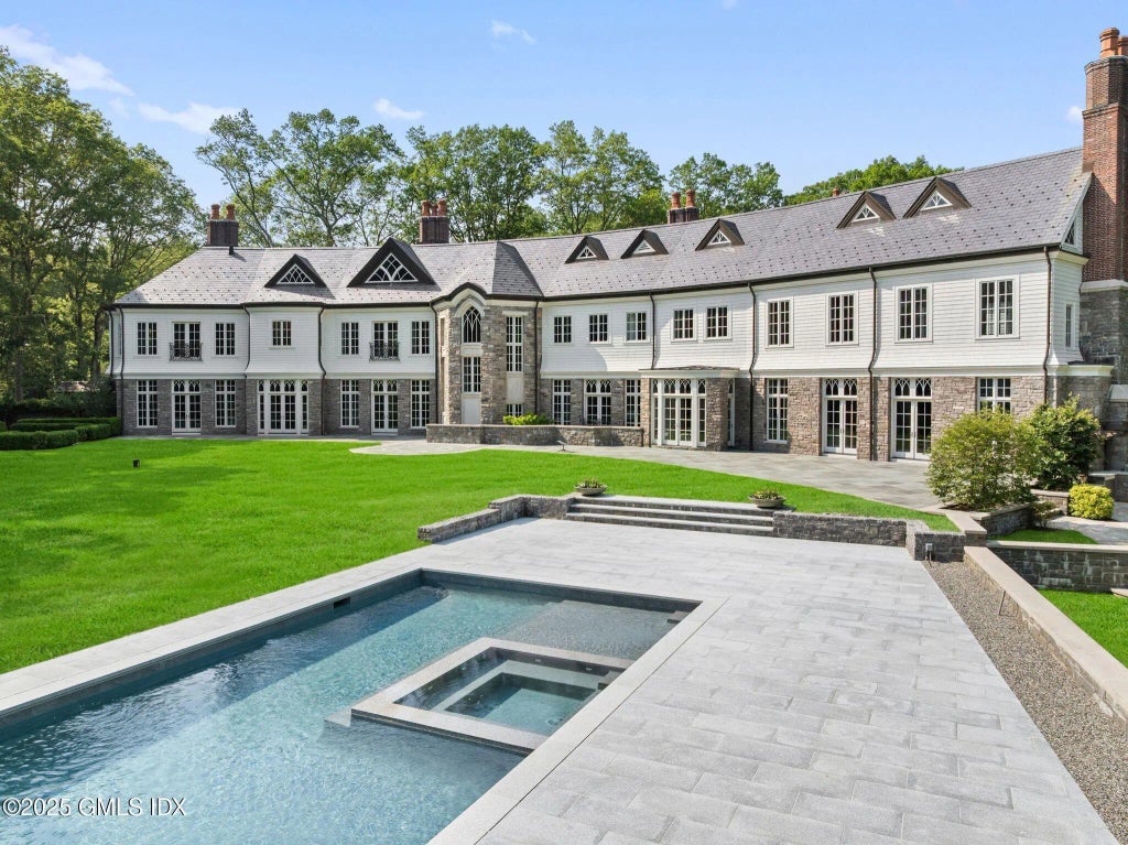 Welcome to 119 Proprietors Crossing, a dramatic estate by architect James E. Gearity. Set on 4 acres this restored 6-bedroom home blends elegance & modern function. A grand foyer with a sweeping staircase and Baccarat chandelier leads to refined living spaces, including the immaculate Blue Room, study with a secret staircase, and great room with 35+ ft vaulted ceilings and integrated speakers. The chef's kitchen is complemented by the Great Room's extended kitchen with a enormous quartz island. The primary suite boasts a new wetroom with a freestanding tub and an 800 sq. ft. dressing room. Outdoor spaces include a new pool/spa and a dining pavilion. Built for comfort, the home offers commercial-grade systems, SIP walls, a Welsh slate roof, radiant heat, and 14 temperature zones.