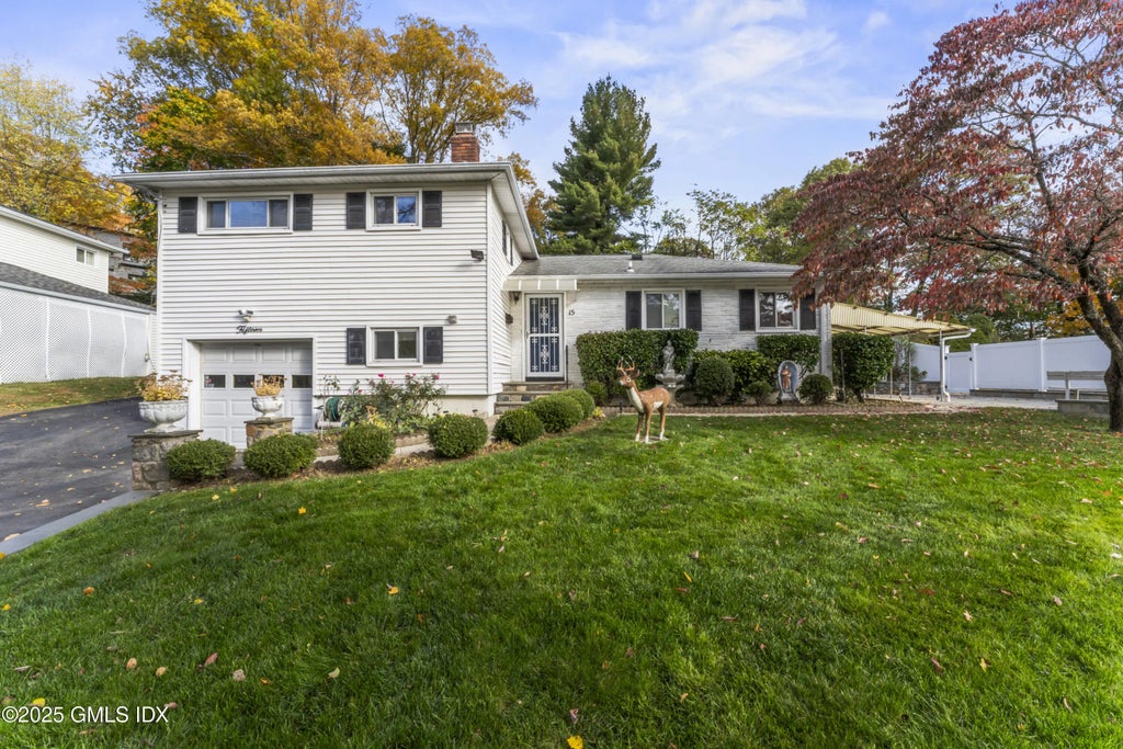 Welcome to this move-in ready split-level home ideally located in the Glenville neighborhood. Set on a quiet cul-de-sac, this residence offers comfort, convenience, and great flow. The main level features a bright living room and dining area with easy access to the kitchen, perfect for everyday living and entertaining. Upstairs are three bedrooms and two full baths, including a spacious primary suite. The lower level offers a comfortable family room with a fireplace. The private yard has a relaxing hot tub—ideal for outdoor enjoyment. Additional features include central air, public utilities (water, sewer, gas), an attached garage plus a carport. Conveniently located, this home combines suburban tranquility with easy access to everything Greenwich has to offer.