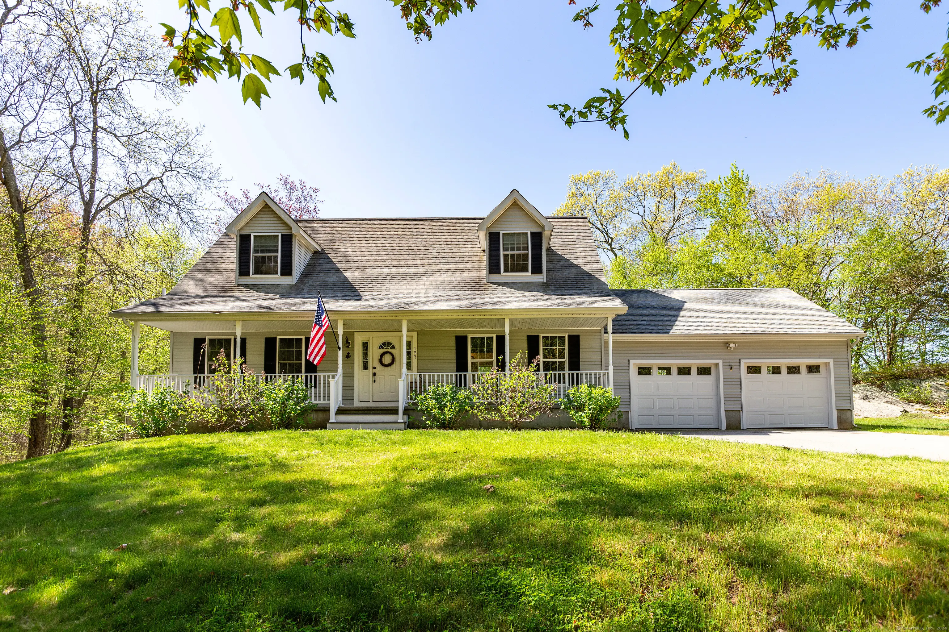 This young 3-bedroom, 3-bath expandable Cape is set on two lots totaling nearly 12 acres, offering unmatched privacy and scenic views over the property's orchard featuring 11 apple trees and 3 Asian pear trees. Enjoy the potential to subdivide the land into up to 5 lots or simply savor the tranquility of this expansive setting. Highlights include a welcoming farmers porch, Trex rear deck, large patio with fire pit, and a fully fenced backyard. Inside, you'll find a granite kitchen, hardwood floors throughout, a fireplaced family room, and central air. The first-floor laundry adds convenience, while the partially finished walkout basement offers a versatile "man cave" complete with a full bath, pellet stove, and bar area. Upstairs, all bedrooms are generously sized-the primary suite boasts a huge walk-in closet and a beautifully renovated bath with new tile and glass shower enclosure. The property also includes a 2-car garage and ample outdoor space for recreation, expansion, or future development. A fantastic opportunity for those seeking privacy, and natural beauty, -all within easy reach of local amenities and highway access.
