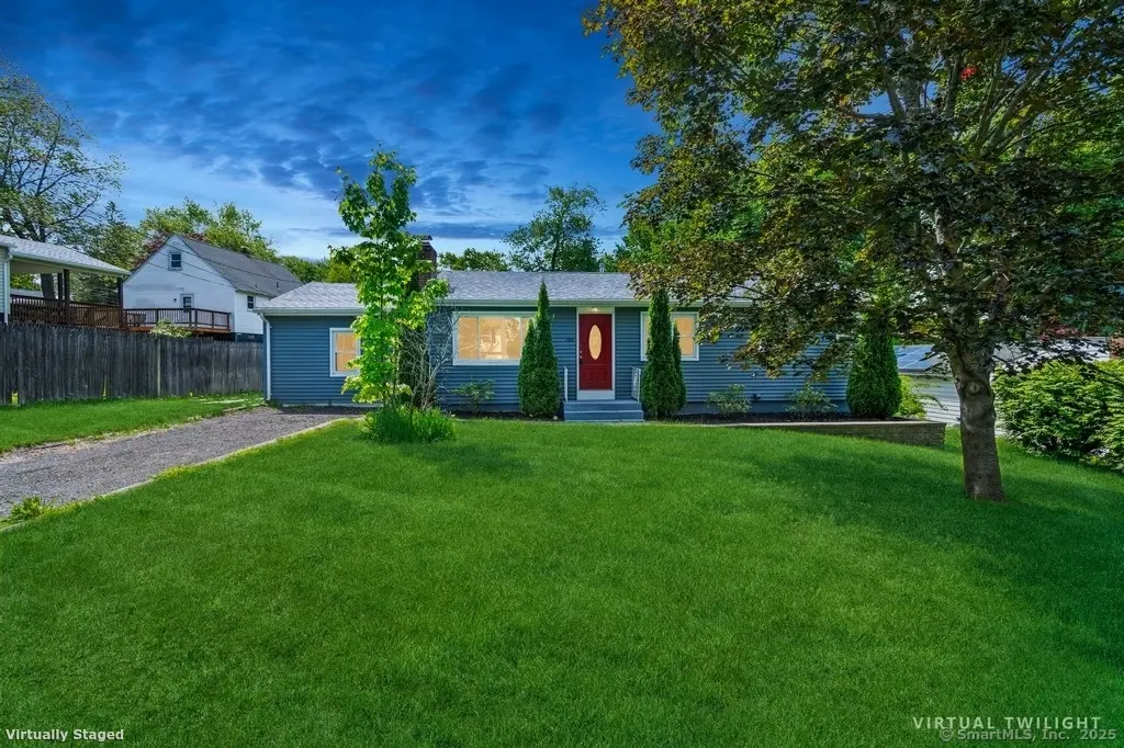 Remodeled ranch style home has 6 rooms, 3 bedrooms, 1.5 bathrooms, plus extra room that can be used as bedroom, office, playroom, etc. Eatin kitchen has new white Shaker style cabinets, granite countertops, engineered wood floors, recessed lighting, stainless steel appliances plus sliders to large deck overlooking back yard. Good size living room has a picture window, fireplace and engineered wood floors. Three bedrooms all have new lighting and engineered wood flooring. Both full and half bath have been remodeled with new sinks and vanities, toilets, lighting and flooring. Full bath has new tub combo shower with tiled surround. House has been insulated and freshly painted throughout. It is heated with propane heat and cooled with central air conditioning. Lot is open and slightly sloping. Close to highway access.