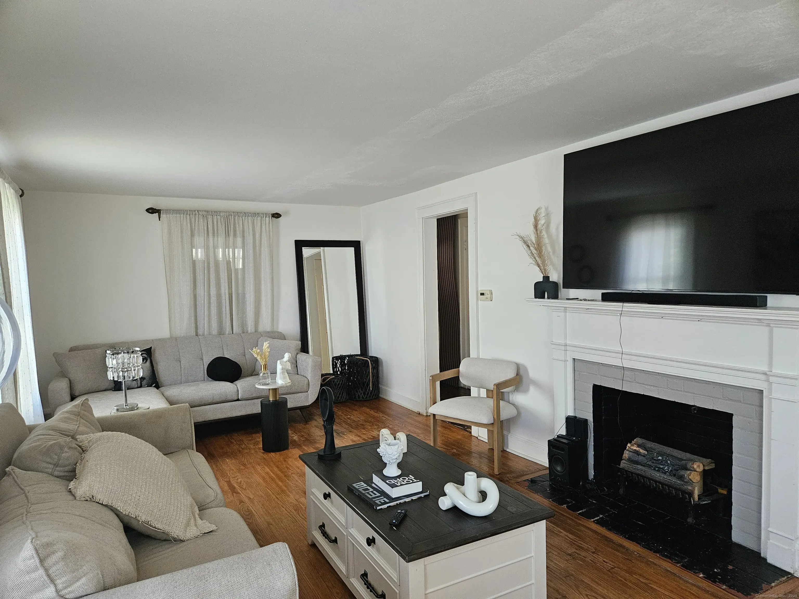 Charming 3 bedrooms, 1.5 bath Cape nestled within close distance from the train, I-95, town green, and grocery stores, ideal for commuters and families. The eat-in kitchen features a two-seat island overlooking a fully fenced 0.26-acre yard, perfect for pets, gardening, or summer barbecues. Entertain with ease in the generous living room, centered around a cozy fireplace and enhanced by rich hardwood floors that extend throughout. Enjoy family dinners in the formal dining room, also the enclosed porch offers a peaceful spot for morning coffee or book reading. Upstairs, three light-filled bedrooms and a renovated full bath. The spacious basement includes laundry hookups and extra storage. Gas heat, city water, and sewer. This home is a canvas for your updates.