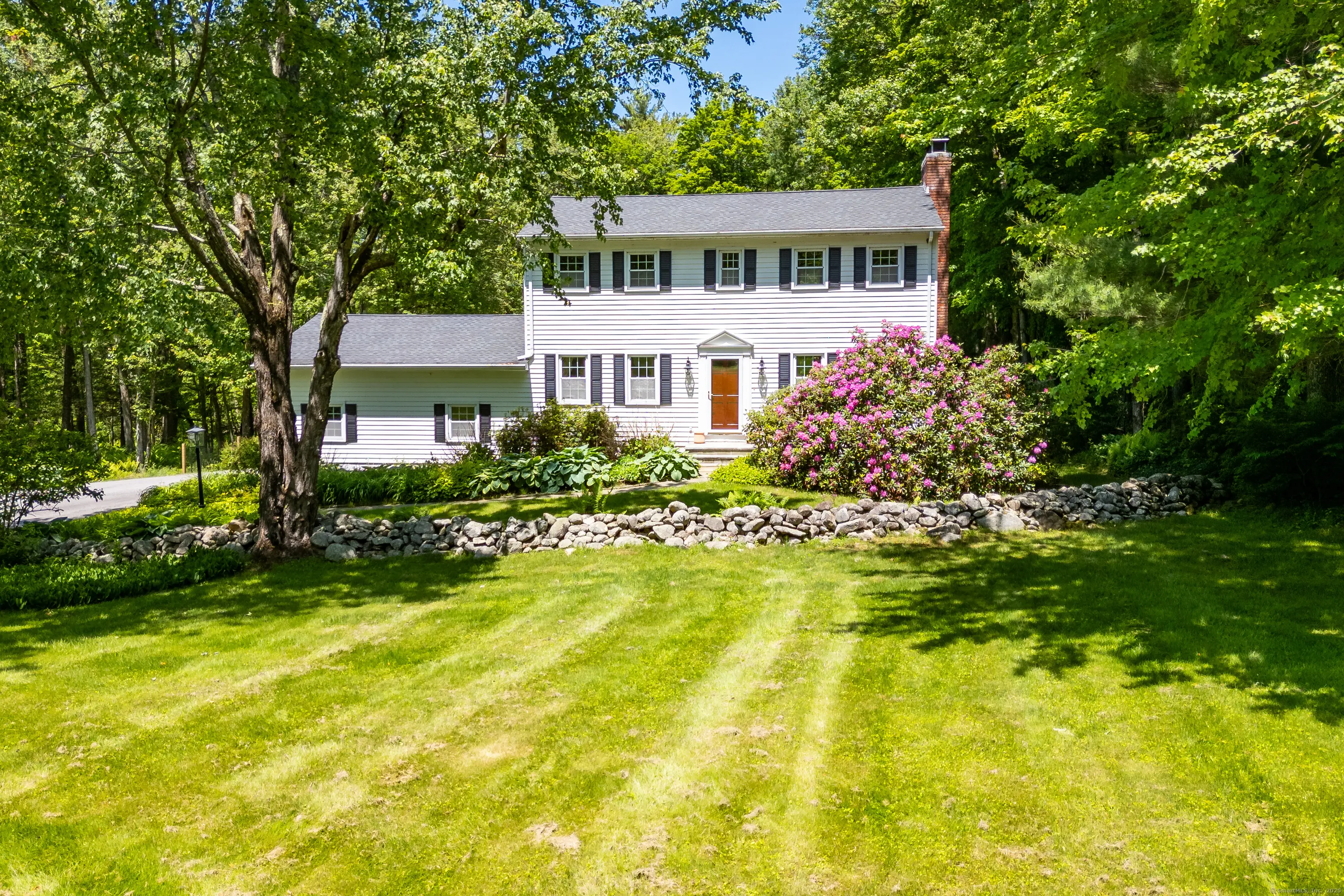 Welcome to Milton Meadow. This classic center hall colonial is nestled in a sought-after country setting on nearly three acres of meticulously landscaped grounds. This recently renovated three bedroom home offers a harmonious blend of classic charm and modern living. As you step inside, the main floor unfolds into an expansive living room, complete with a cozy wood-burning fireplace, perfect for New England evenings. The adjacent dining room invites memorable gatherings, while the kitchen, featuring a convenient walk-out, serves as a gateway to outdoor deck and patio, with the security of a fenced yard. Upstairs, the large primary suite becomes a private retreat, boasting built-in storage, a comfortable area for seating, and its own fireplace, creating a sanctuary for relaxation. Two additional bedrooms on the upper level offer ample space for family or guests. The residence is surrounded by lush gardens and a private fenced backyard shielded by mature arborvitae hedging and abundant ferns. The location offers the convenience of proximity to the charming shops, parks, and restaurants of both historic Bantam and Litchfield.