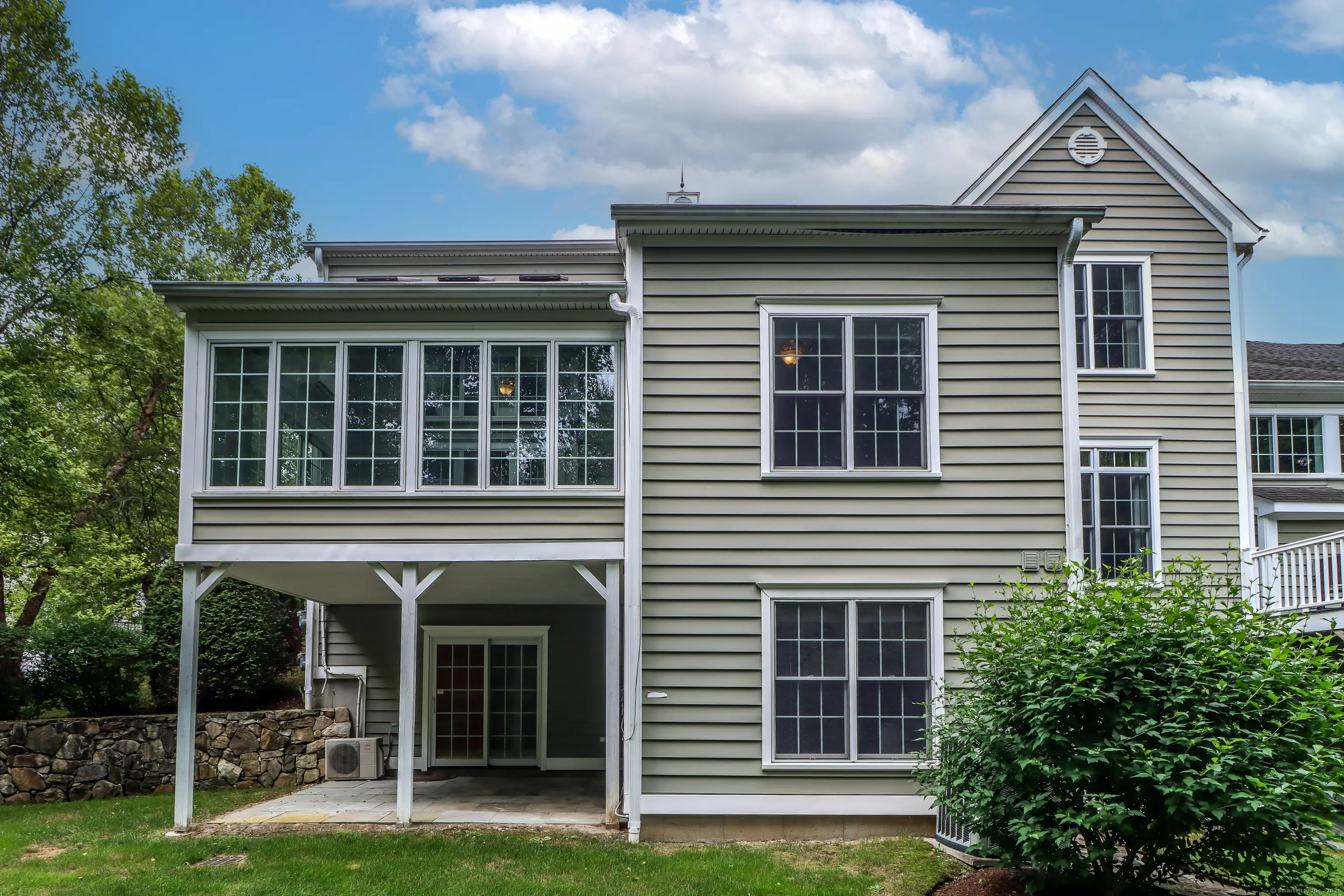 Experience refined living in this stunning townhome set in desirable Newbury Village.From its stately exterior with carriage-style garage doors to its open-concept interior w/hardwood floors & soaring windows, every detail is designed to impress. An elegant foyer presents the inviting main-level layout. The gourmet kitchen features custom cabinetry, granite counters, tile backsplash, double wall ovens, and island: an ideal workspace for the serious home chef. A dining area opens to the dramatic 2-story great room w/gas fireplace. French door sliders lead to the spacious 3-season sunroom with a separate heating & cooling system and soothing wooded views. The main level primary suite offers a serene escape, complete w/rich hardwood floors, a tray ceiling, a sumptuous bath w/soaking tub, dual vanity, separate shower, & a walk-in closet with built-in shelving. A laundry room, powder room, & garage access complete the first floor. Upstairs, discover a spacious loft perfect for a home office or lounge, plus 2 generously sized bedrooms each w/ceiling fan & access to the beautifully appointed bath. Fully finished walk-out lower level provides abundant flexible space: perfect for office, media room, gym, or guest suite. Sliders to covered patio & yard. Move-in ready, this townhome offers luxury, space, and a lifestyle of ease.