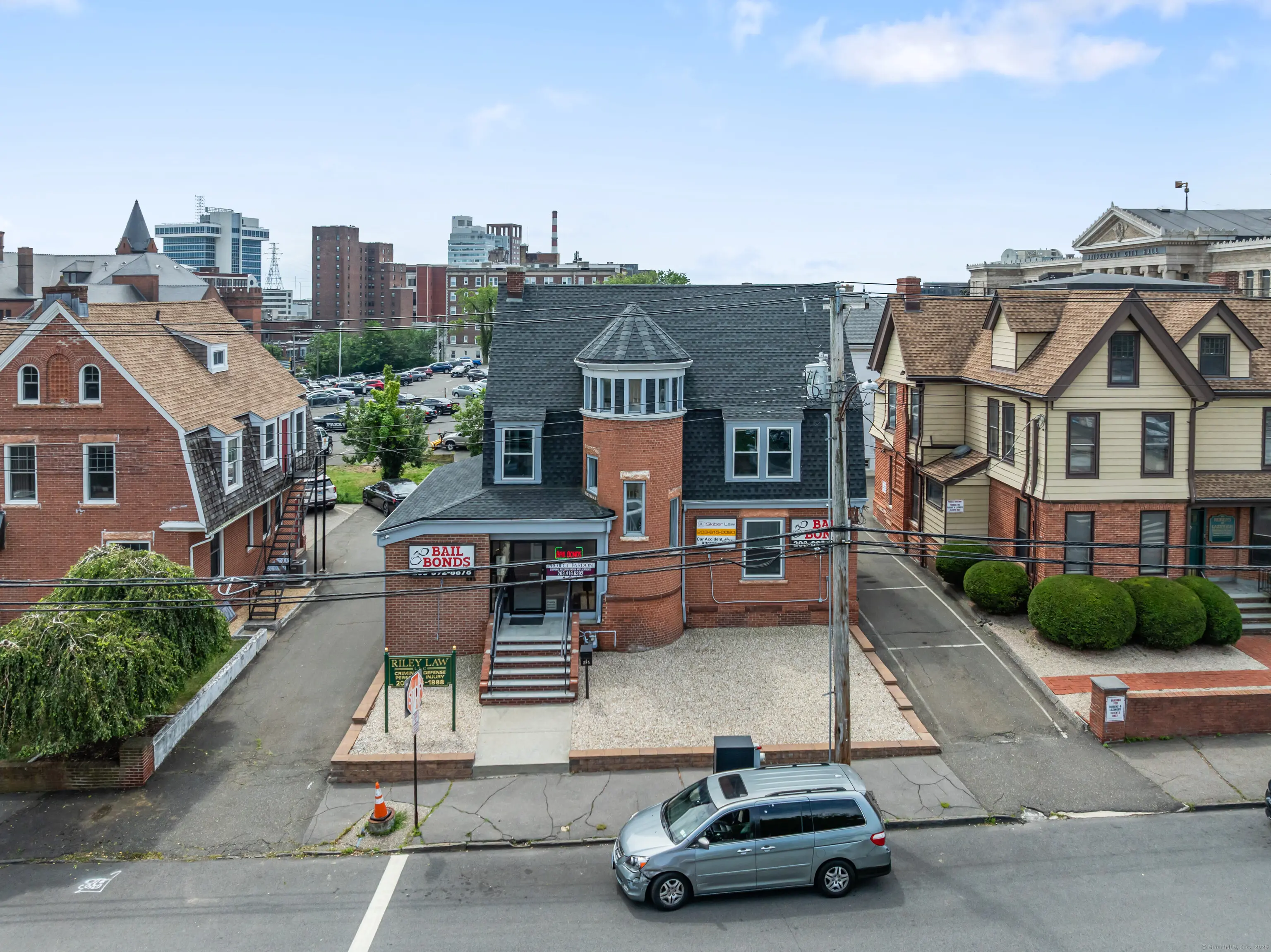 Renovated Free standing Office Building. Great location off Main Street and Washington Avenue, highly visible. The office features a reception area, 6-8 offices, open space with natural light, a full basement, and 3 bathrooms. AREA FEATURES 0.45 miles to I-95 : 0.5 miles to all major shopping : 1.7 miles to St Vincent hospital : 2.1 miles to Beardsley Park : 0.9 miles to Merritt Parkway/Route 8 : 0.9 miles to Bridgeport train station : 2.1 miles to Seaside Park : 2.4 miles to Bridgeport hospital Yale New Haven.
