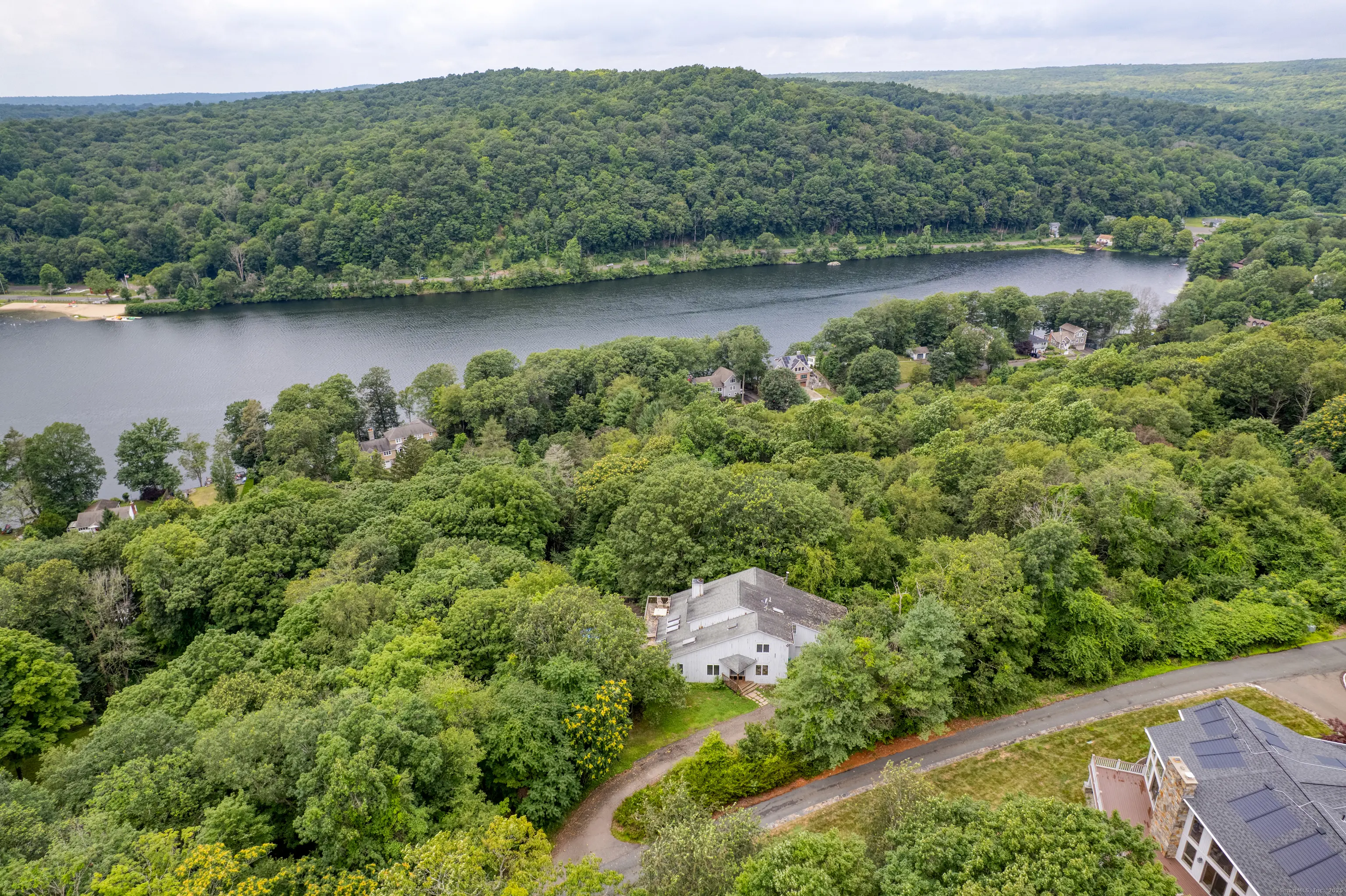 Perched atop a scenic hill on four acres, this well-built home is a diamond in the rough - with your vision and a little TLC you can make it shine. Enjoy breathtaking sunset views and seamless indoor-outdoor living with expansive decks and natural surroundings. Just a short walk to the sparkling waters of Lake Quonnipaug, you'll have easy access to swimming, boating, kayaking, and fishing. For land lovers, explore nearby hiking trails or cycle through the idyllic countryside. Abundant sunlight pours through large windows, framing ever-changing seasonal views of the surrounding bluffs and woodlands. Inside, the home balances striking architectural drama, featuring soaring ceilings, with thoughtfully designed living areas. The main level has an open-floor concept. In addition to the Living Room, Dining Room, Family room and kitchen, there is a convenient bedroom, fireplace, and four-season sunroom - perfect for growing plants year-round. Upstairs there is another bedroom, full bath in the hallway, and the Primary en-suite with large walk-in closet. Completing the upstairs is a dedicated home office, with winter views of the lake, which can also serve as a bedroom. On the lower level, there is a walkout basement constructed with high ceilings, making it the perfect place for a studio or gym.