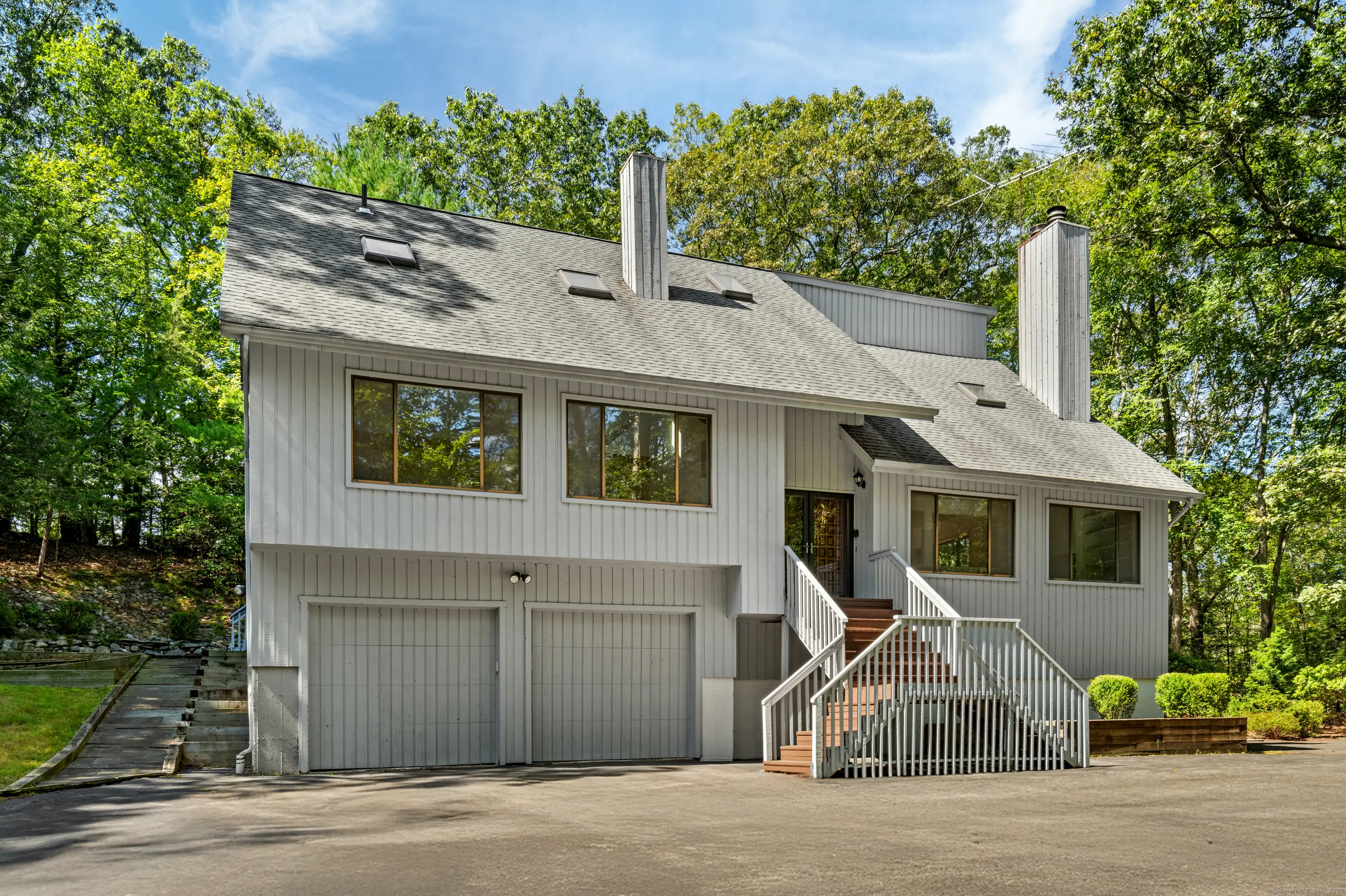Located on a peaceful cul-de-sac in Stamford's desirable Westover neighborhood, this spacious 4-bedroom, 2.5-bath Contemporary blends comfort and style on 1.77 acres. The sun-filled living room features vaulted ceilings, skylights, a fireplace, and hardwood floors. A separate family room offers a second fireplace, wet bar, and vaulted ceilings-ideal for entertaining. The formal dining room includes a sliding door to a large 896 sq ft deck, perfect for indoor-outdoor living. The kitchen offers a center island, ample cabinet space, and deck access for seamless hosting. The main level also includes a bedroom, half bath, and a large walk-in laundry room and pantry. Upstairs, the primary suite impresses with vaulted ceilings, a walk-in closet, and a luxurious en-suite bath featuring a double vanity, stall shower, and whirlpool tub. Two additional bedrooms with hardwood floors and vaulted ceilings share a full hallway bath. The unfinished basement includes two walk-in cedar closets, a storage room, and access to a two-car garage. Conveniently located near the Merritt Parkway, I-95, Metro North, Fort Stamford Park, Whole Foods, Mianus River Park, and Roxbury Swim & Tennis Club. This well-maintained home offers privacy, space, and easy access to all that Stamford has to offer.