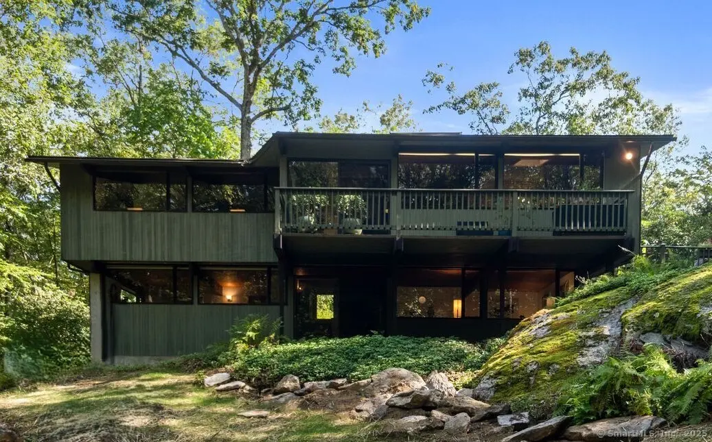 Tucked away on 2 acres of serene, natural landscape in bucolic East Haddam, this custom Acorn Deck Home is a true retreat for nature lovers, creatives, and those seeking peaceful modern living. Surrounded by native gardens including a tranquil water feature, this mid-century modern gem offers a rare treehouse-like atmosphere, blending indoor comfort with outdoor beauty. Inside, you'll find 4 bedrooms and 2 full baths with dramatic cathedral ceilings, exposed fir beams, walls of windows trimmed in mahogany and skylights that flood the space with natural light. The updated gourmet kitchen is ideal for both culinary adventures and entertaining, featuring generous prep space and a sleek induction cooktop. The main level is perfect for entertaining with access to both decks. A well-thought design with two bedrooms and a full bath on each floor provide privacy. The lower level adds flexible living space with 2 additional bedrooms, a full bath, and a separate entrance; perfect for guests, multigenerational living, or a home office setup. Thoughtful recent upgrades include: new roof on the home and 2-car detached garage, new furnace, new AC mini splits, hot water heater, and water filtration system, brand-new septic system, whole-house generator, renovated entryway and kitchen island and washer/dryer. Whether you're looking for a weekend getaway or a full-time sanctuary, this one-of-a-kind home offers timeless architecture, privacy, and convenience. 2 hours from NYC and Boston.