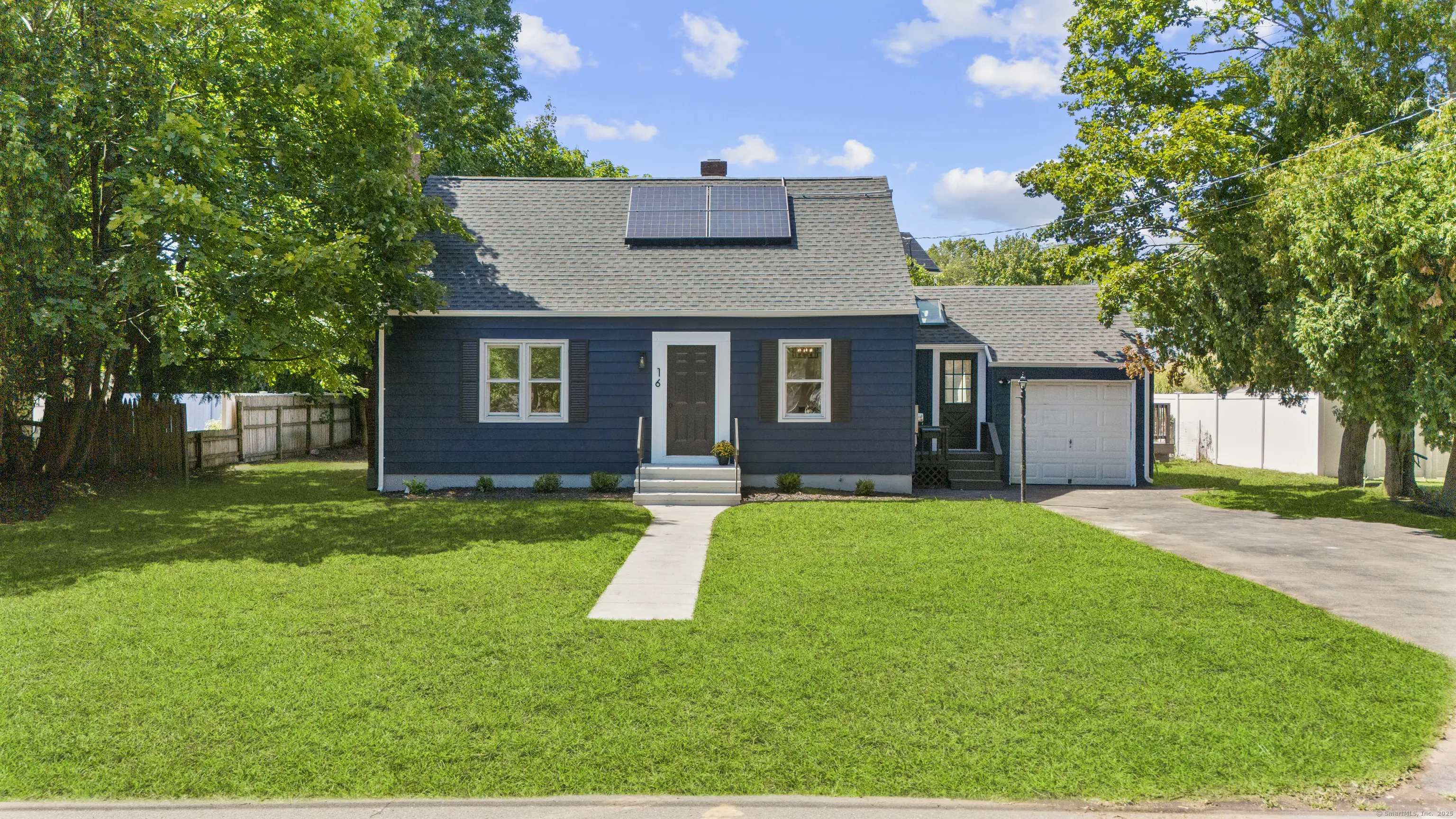This immaculate 3-bedroom, 2-bathroom home has been fully renovated from top to bottom, blending timeless character with modern updates. From the moment you step inside, you'll be charmed by the arched doorways and thoughtful design choices that make this home truly stand out. The bright, airy kitchen is the centerpiece of the home, featuring crisp white cabinetry, gleaming countertops, and stainless steel appliances that make cooking and entertaining a delight. Both bathrooms have been updated with chic finishes, offering a spa-like retreat. Relax in the cozy 3-season room, the perfect spot to enjoy everything New England's changing seasons have to offer. The fully finished basement provides endless possibilities-create a home office, playroom, gym, or media space to suit your lifestyle. Step outside to a spacious backyard with a generous deck ideal for entertaining, summer barbecues, or simply unwinding at the end of the day. Adding even more value, this home is equipped with solar panels, keeping utility costs low while offering an eco-friendly advantage. Located in the highly sought-after town of North Haven, this home offers the perfect blend of comfort, convenience, and affordability. With no detail missed in the renovation, all that's left to do is move in and make it your own!