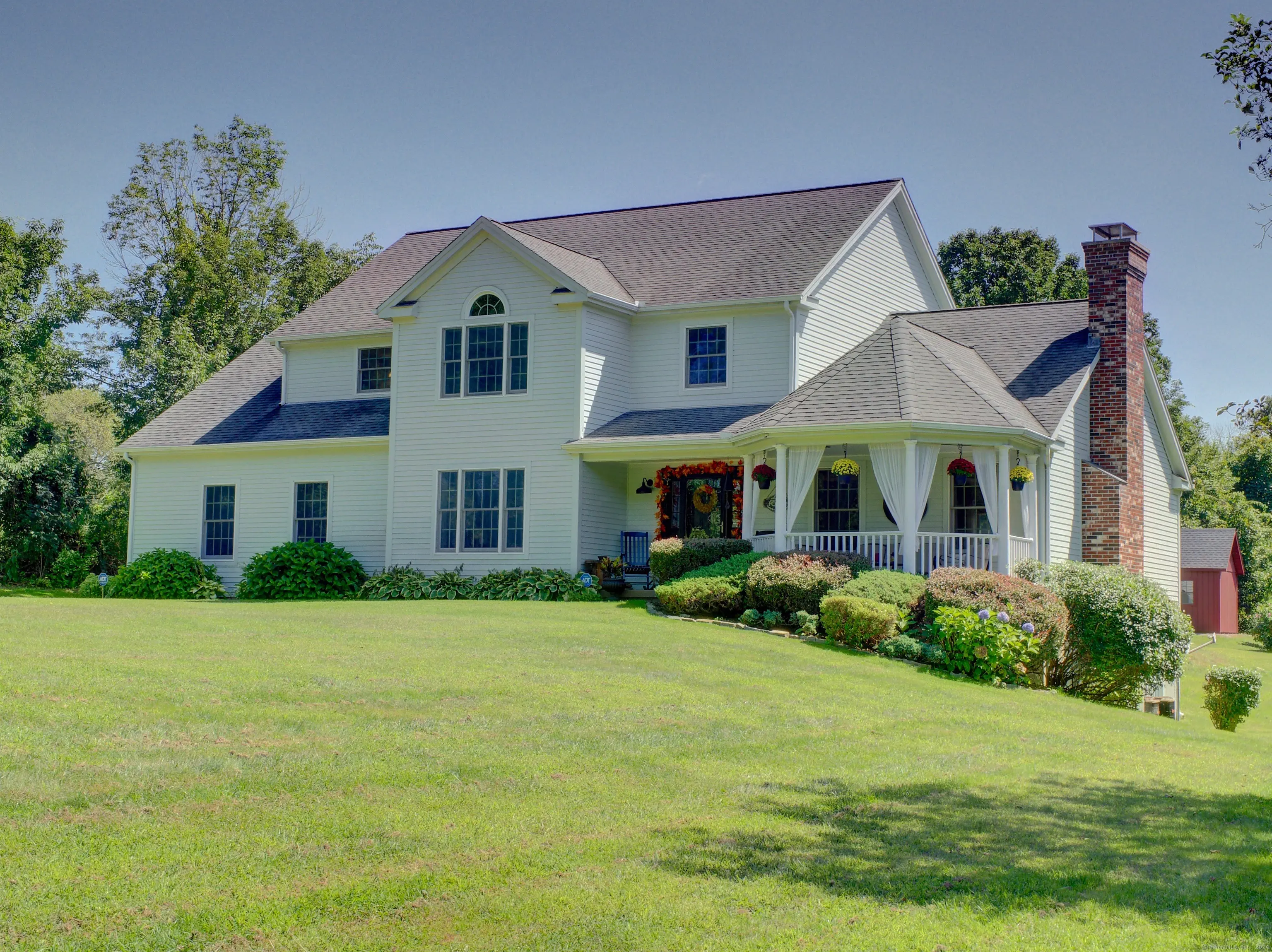 This beautiful 3222 sq. ft. Colonial offers everything you could want and more, set on a beautifully manicured lot in a quiet and desirable location. Inside you'll find a spacious layout with 4 bedrooms, 2.5 baths, hardwood floors o the main level, and central air throughout. The inviting living room features a cozy fireplace, while the large kitchen is a true chef's dream with abundant cabinetry, granite counters, stainless steel appliances, a massive center island that seats six, a side pantry, and a slider leading to the deck and pool. The primary suite boasts a luxurious bath with Jacuzzi tub and separate shower along with a massive walk-in-closet. Additional highlights include first-floor laundry and a partially finished lower-level family room with walk-out-access-perfect for extended family or in-law possibilities adding 303 sq ft of living space. Outdoors, enjoy a covered front porch, large Trex deck, above-ground pool, stone fire pit, and a Klotter Farm shed for all your storage needs. This property blends comfort and style in one perfect package.