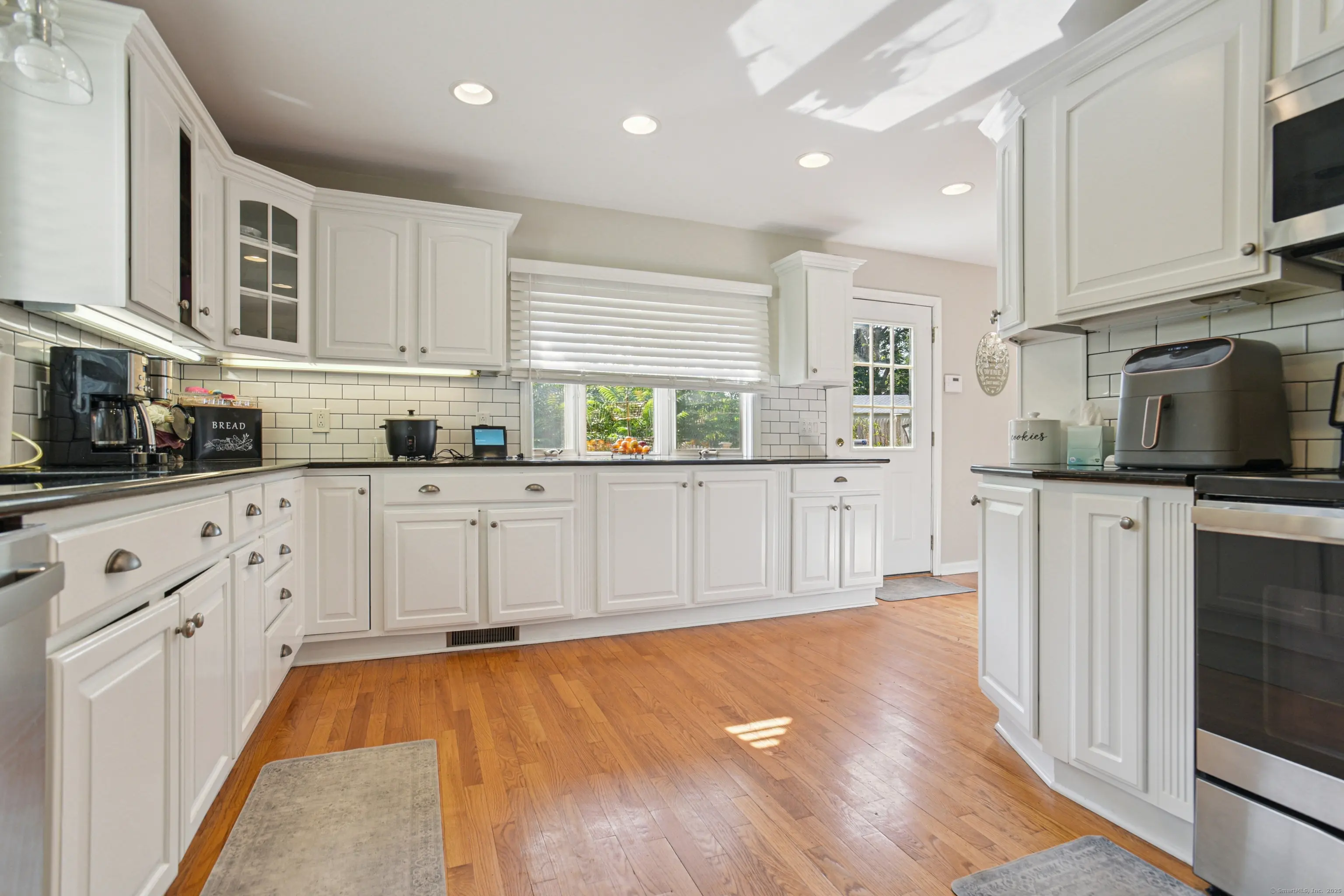 Large, Spacious, Updated Expanded Ranch with In-Law Suite on 1.15 Acres: Be surprised and delighted with over 2900 sq feet of living space, featuring 5 bedrooms and 3 full baths. This beautifully updated and move-in-ready ranch-style home offers the ideal setup for multi-generational living or large families-featuring a main level legal private in-law suite with separate entrance. The fully separate living quarters in the main home features a brand new main floor primary suite and thoughtful updates throughout. Set on a fenced level 1.15-acre lot in a peaceful, dead-end neighborhood, this home offers 5 bedrooms, 3 full bathrooms, a finished basement, and a 2-car garage. At one end of the home, the in-law suite provides complete privacy, with its own entrance, a spacious bedroom with vaulted ceiling, walk-in closet, full bath, living room, kitchen, and laundry-all on one level. The main residence, includes 4 bedrooms and 3 full baths (one on each level). Retreat to your private main-floor private primary suite. Enjoy a sun-drenched dining room (or family room) with wall-to-wall windows, a cozy living room with fireplace, an eat-in kitchen, main-level laundry, and direct garage access.