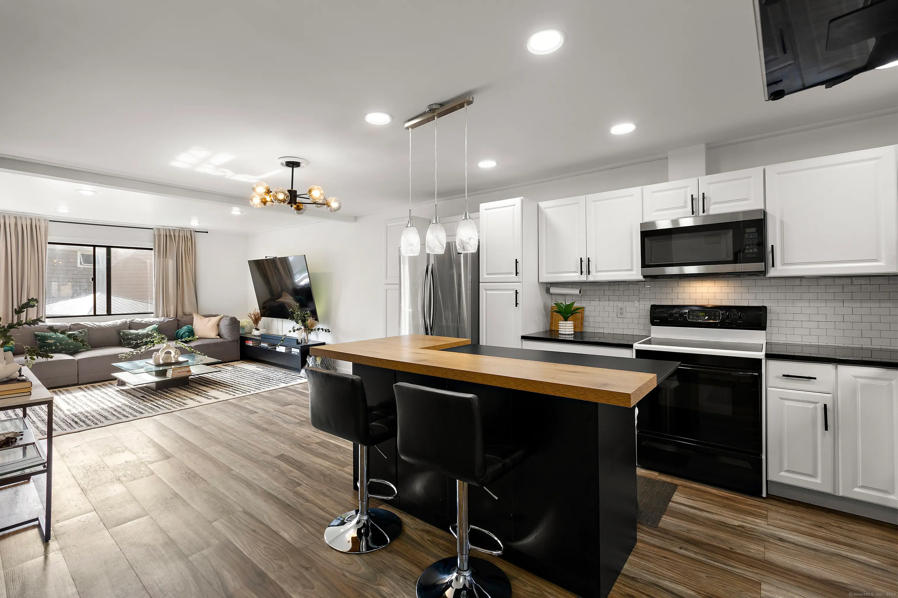 Stunning tri-level townhome fully-updated & move-in-ready! Amazingly spacious & bright home featuring desirable open floor plan. Main level living room, dining area and gorgeous kitchen w/ newer wood-grained vinyl floors plus an updated power room. Second floor features a large primary bedroom w/ two spacious closets, a beautifully renovated full bathroom w/ walk-in tiled shower, a second bedroom and a huge walk-in hall storage closet. The lower level offers multiple options; playroom, family room, home office &/or a third bedroom and walk-out through sliders to your own private patio & fenced yard area plus laundry & storage rooms. Two assigned spaces in the Newly Paved (Oct 17) parking lot, low common charges and super-convenient location; walking distance to the train, schools, restaurants, shopping, parks & more.