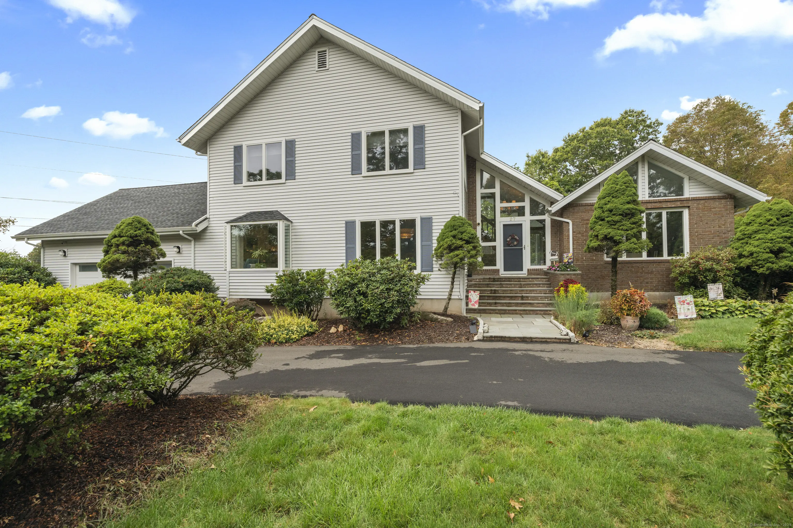 Welcome to your dream home! This stunning colonial is nestled on over an acre of picturesque land backing up to the serene Supply Pond property and trails. This home features 4 bedrooms and 3.5 baths. The primary bedroom is a true retreat, showcasing a remodeled full bathroom for your private relaxation. Three additional bedrooms and a full bath complete the second floor. The first floor is an open floor plan which includes a large, remodeled kitchen boasting high-end Viking appliances. This extends into an expansive great room, with gas fireplace and built-in bar, ideal for entertaining. A dining room and half bath round out this area. An all season sunroom beyond the great room, equipped with both heat and air conditioning, includes a full bath. The opposite side of the home features a living room with cathedral ceilings and wood burning fireplace. The partially finished heated basement provides additional living space. A two car attached garage leads to a mud room and laundry area. Step outside to the back deck leading to an above-ground heated pool. An irrigation system and alarm system with outside cameras are also included. Two zoned central air provides summer comfort throughout the home. Don't miss the opportunity to make this exquisite colonial your own! Schedule a showing today to experience all that this exceptional property has to offer.