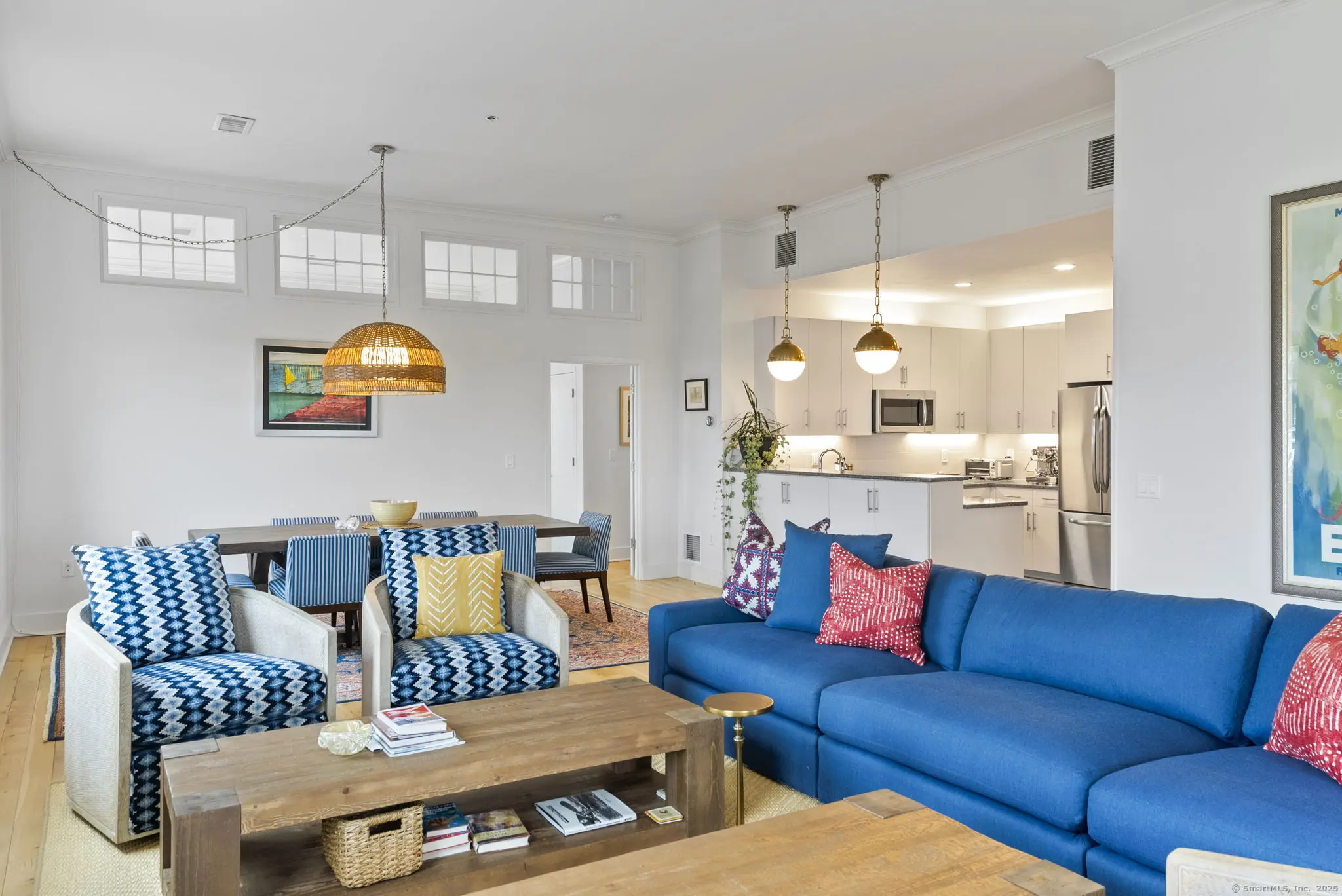 Sweeping views of the Mystic River and downtown Mystic from this move in ready condo. Single floor living with a spacious primary bedroom suite and bathroom, along with a guest bedroom and another separate full bath. A well equipped and updated kitchen opens to a large dining and living room. Wrap around windows let in natural light and truly bring the outdoors in, making you feel part of downtown Mystic and the seaport marina surroundings. While convenient to downtown and the restaurants and shops, the condominium building is also set in a private corner with easy access in and out of the complex. Set between Mystic and Stonington Borough, this property provides the best of coastal Mystic.