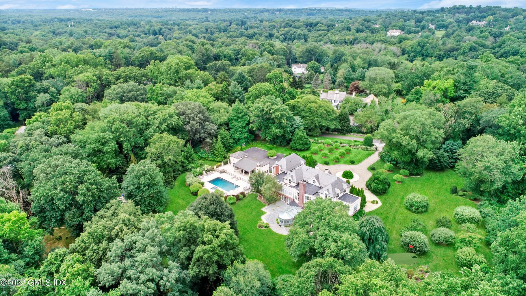 Private Resort Style living on 4 acres in Round Hill area. Meticulously renovated like New! Beautiful Gated Home with circular driveway that leads to Beautiful double height Foyer and Great room with floor to ceiling windows. Formal Dining room and Chef's Kitchen open to the Family room that is ideal for an end of day escape. Fabulous New Primary Suite with Sitting room & Office. Luxurious Primary Bath and Custom walk in Closet.Upstairs has three en-suite bedrooms and Family rm. Lower Level is not to be Missed! Wine Cellar,Media & Billiards Room. Gym,Sauna and Indoor 55' Pool that opens to a Beautiful Conservatory. Backyard has it all:Pool with Spa, Pool House w/full bath, Granite Terrace,Putting Green & Room for Tennis Ct. Lush Green Gardens with a variety of Fruit Trees. Garage Heated&EV